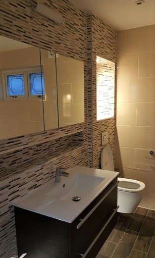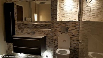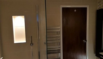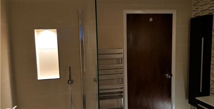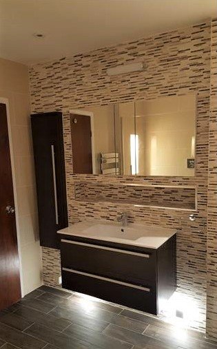 Our client had requested for a bathroom refurbishment. This Morden sleek & stylish bathroom has been installed with a brand new sink with LED lighting at the bottom, with a matching side storage cupboard and a brand new shower. To complete this sleek and stylish look our client had chosen to go for a featured wall, followed with lighter surrounding tiles.