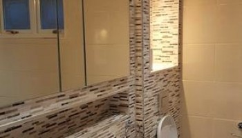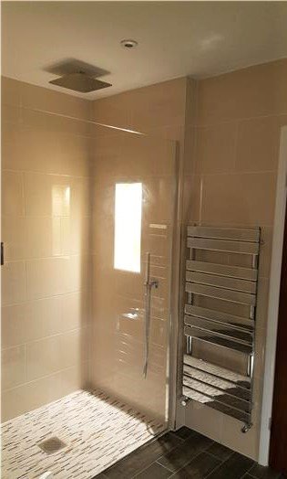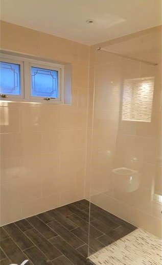 A new box space was created above the toilet, giving the client an option to enhance their personal touch. Our client had chose a darker colour for their flooring but had desired the shower floor to match their new featured wall